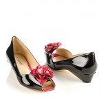 I first saw Via Spiga at Bloomingdales 59th. Street flagship store. Their shoes are amazingly comfortable. I fell in love with a bronze latticed leather flat. Surprise, surprise, I’m enamored with yet another flat (the black with red floral embellishment as seen below). Of course the high heeled floral strappies are also TDF.