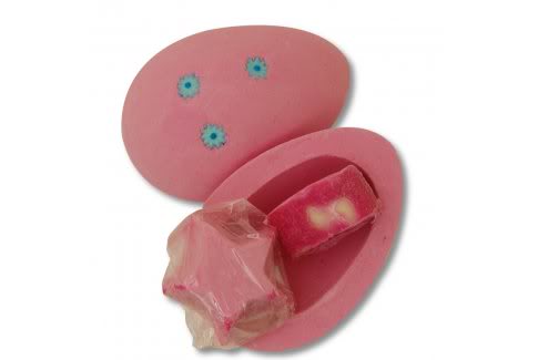 1/3 Easter Egg (Pink) Bath Bomb: Sweet Candy Fluff scent reminding me of pink Peeps marshmallows.